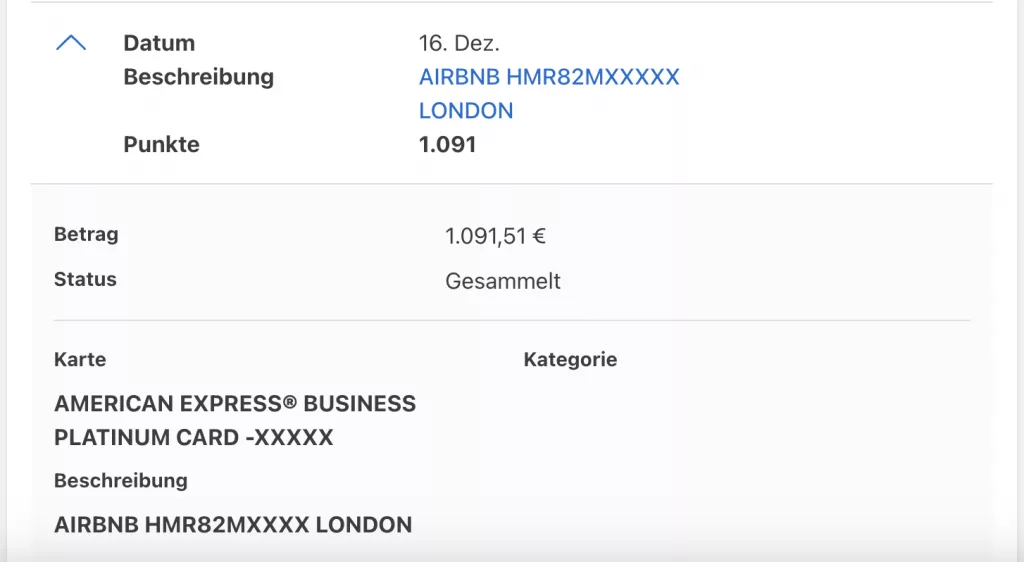 Hier siehst du, wie die Punkte bei Amex gutgeschrieben wurden: